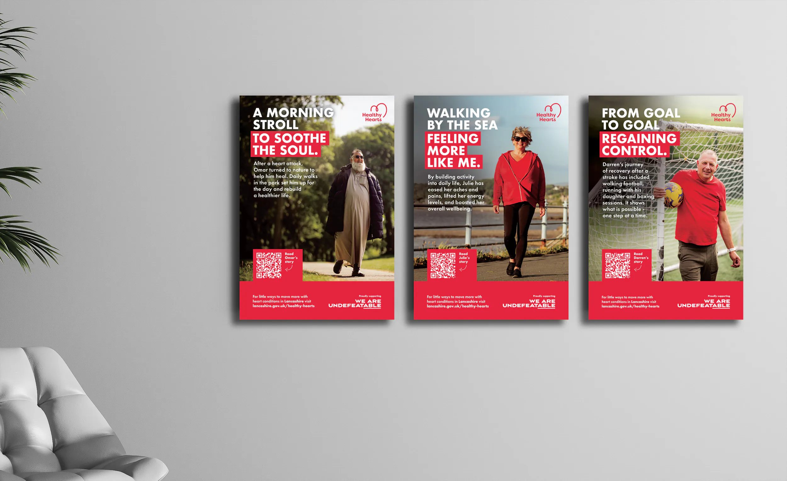 Healthy Hearts was delivered as a fully integrated, multi-channel campaign across print, digital, social and community spaces. We combined bold, highly visible creative with practical tools such as QR-enabled print materials, making it easy for people to access further support and local services. Alongside this, the campaign mobilised a wide network of partners including local authorities, healthcare providers and community organisations, amplifying its reach and ensuring consistency across the county.